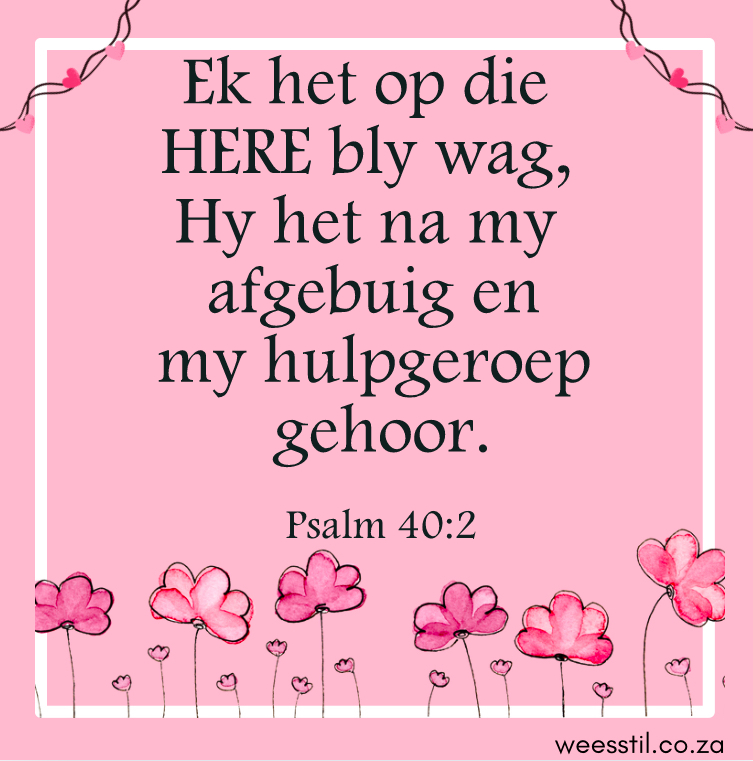 Here, laat U hand van genesing rus op hierdie kosbare vriendin, mag die son van redding oor haar skyn, die son van redding met genesing in sy strale. (Mal. 4:2) Continue reading “Liewe vriendin, ek bid vir jou…”
