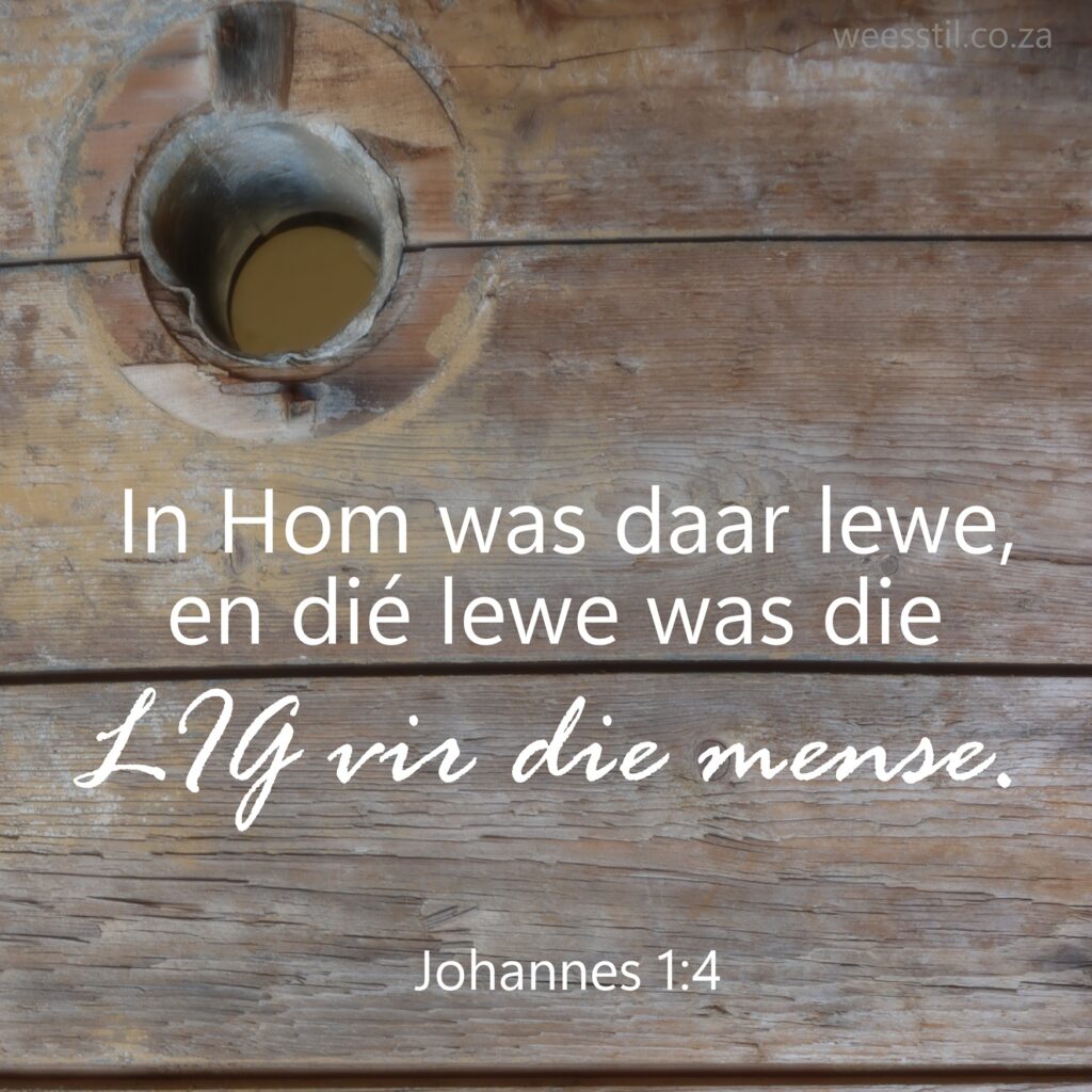 In die begin het Ek die hemel en die aarde geskep. Die aarde was heeltemal onbewoonbaar, dit was donker op die diep waters, My GEES het oor die waters gesweef. Toe het Ek gesê: “Laat daar LIG wees!” En daar was lig. (Gen. 1:3) Op die sesde dag het Ek die mens geskape, as My verteenwoordiger, na My beeld het Ek jou geskep. (Gen. 1:27) Van die skepping van die wêreld af kan jy mensekind uit My werke duidelik aflei, dat My krag ewigdurend is en dat Ek waarlik God is. (Rom. 1:20)
